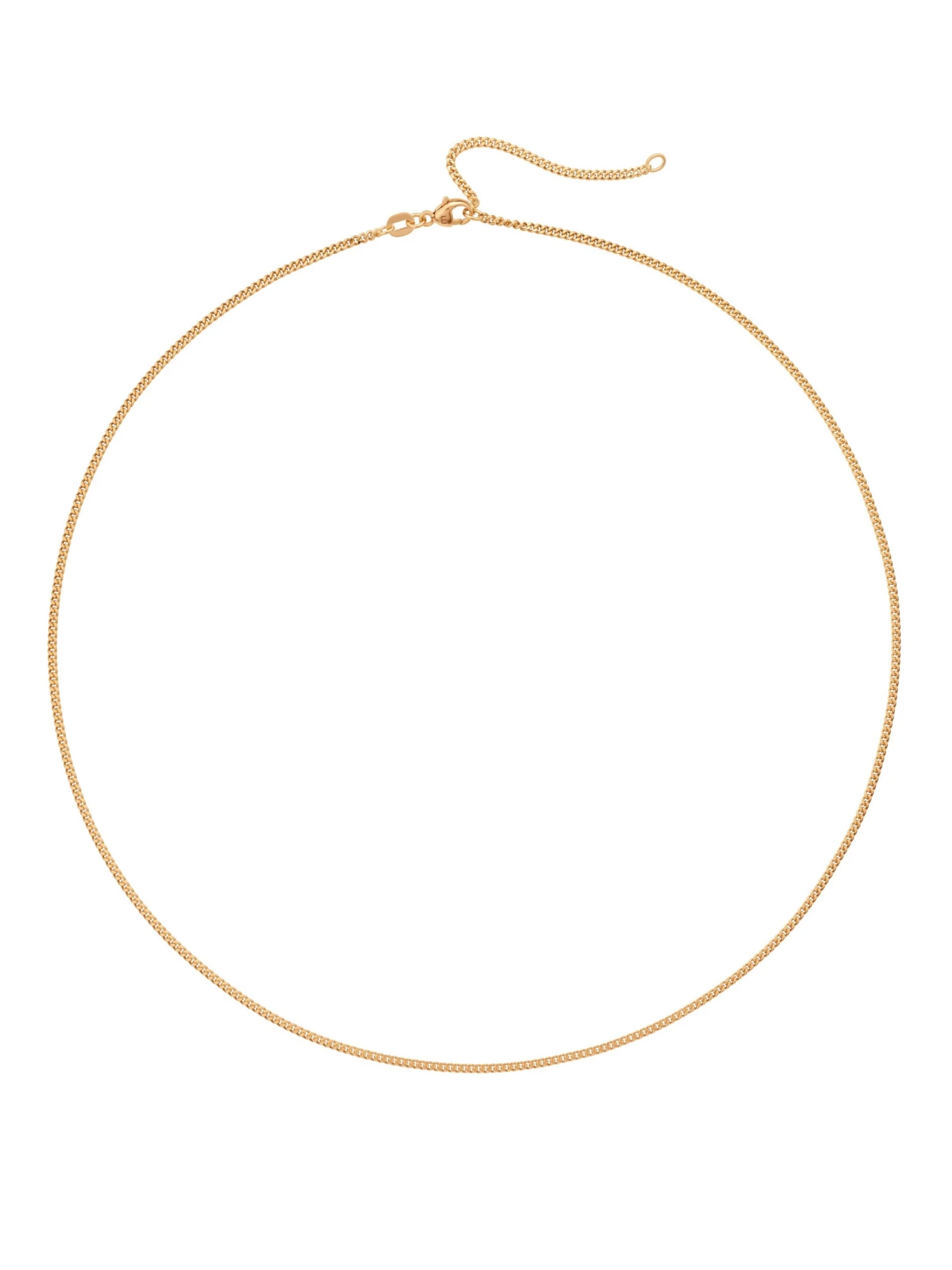 The necklace in 18k yellow gold from the Basics by Wempe Classics line is a standard item in every jewelry box. The sleek curb link chain has a diameter of 1.7 millimeters. The length of 50 centimeters can be shortened by a shortening eyelet at 45 centimeters. This means it is worn very close to your neck and gives every blouse outfit an elegant look. A swivel-clasp lock ensures it is secure.