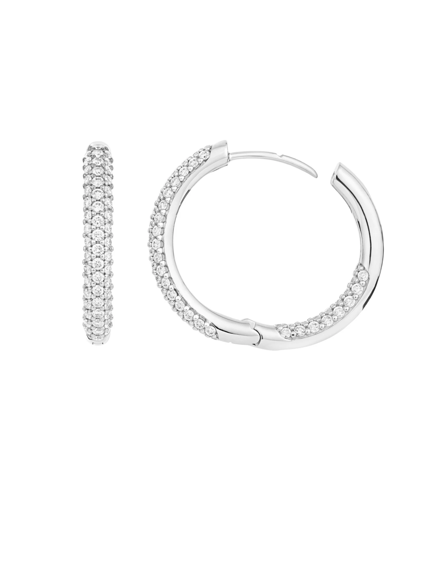 Stylish all-rounders with a special twist: a total of 154 brilliant-cut diamonds with a total carat weight of 1.64 ct let these Basics by Wempe Classics hoop earrings round off any styling. Made of 18k white gold, the earrings look elegant and feminine thanks to their delicate pavé setting. The highlight: the inside is also set with diamonds, so the hoop earrings set glittering highlights from every angle. They are perfect for being worn as a solo piece or for combining them with other pieces of jewelry.