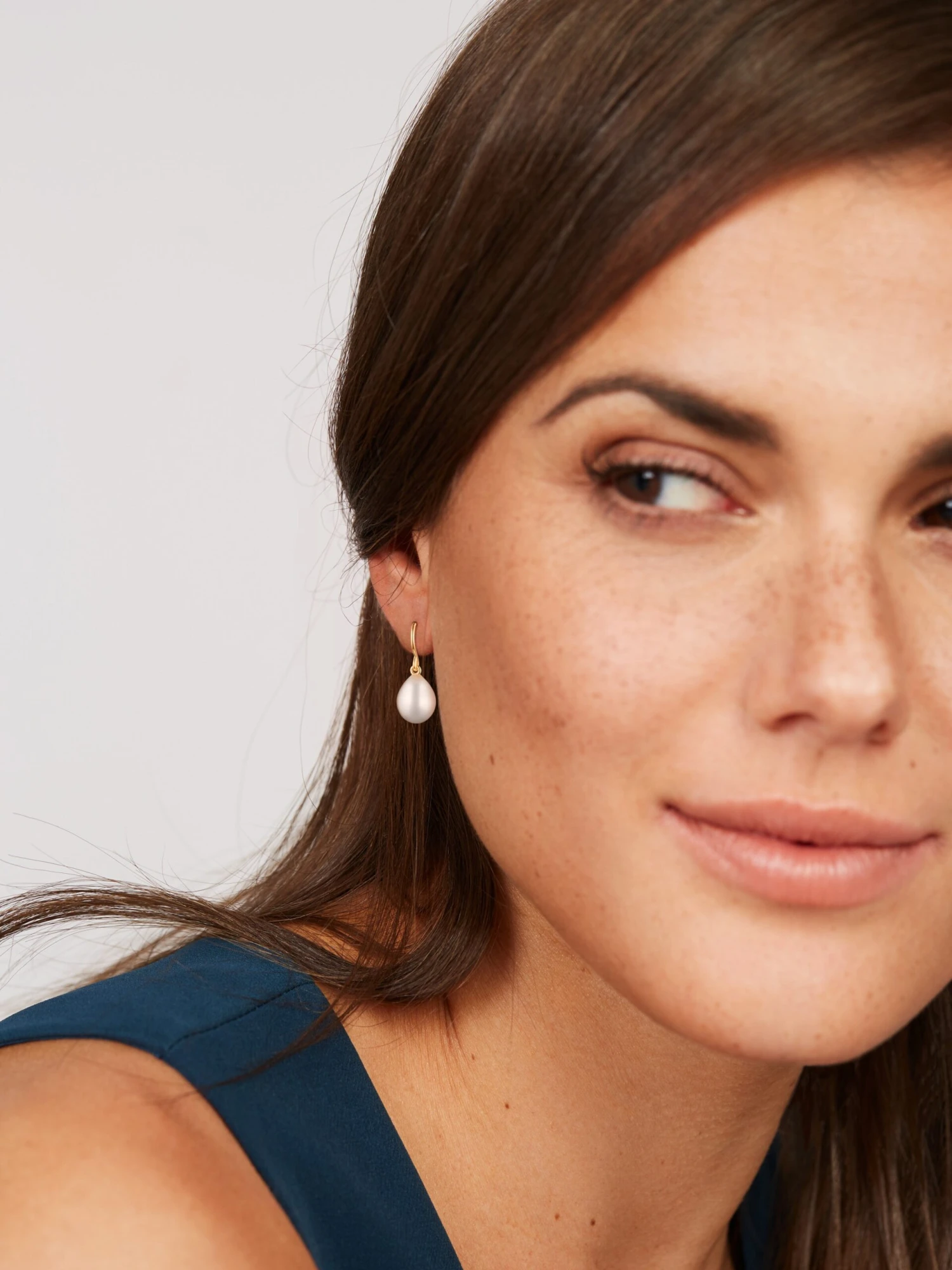 Small pearls, maximum impact: It is the unusual, slightly pear-shaped design of the cultured freshwater pearls suspended on the 18k yellow gold, that makes this ear jewelry so special. The Basics by Wempe Classics earrings are also very versatile: They create a casual look when worn with loose hair and a summer dress, a classic look with a white blouse and sleek updo – making them real all-rounders throughout the year and for any occasion.