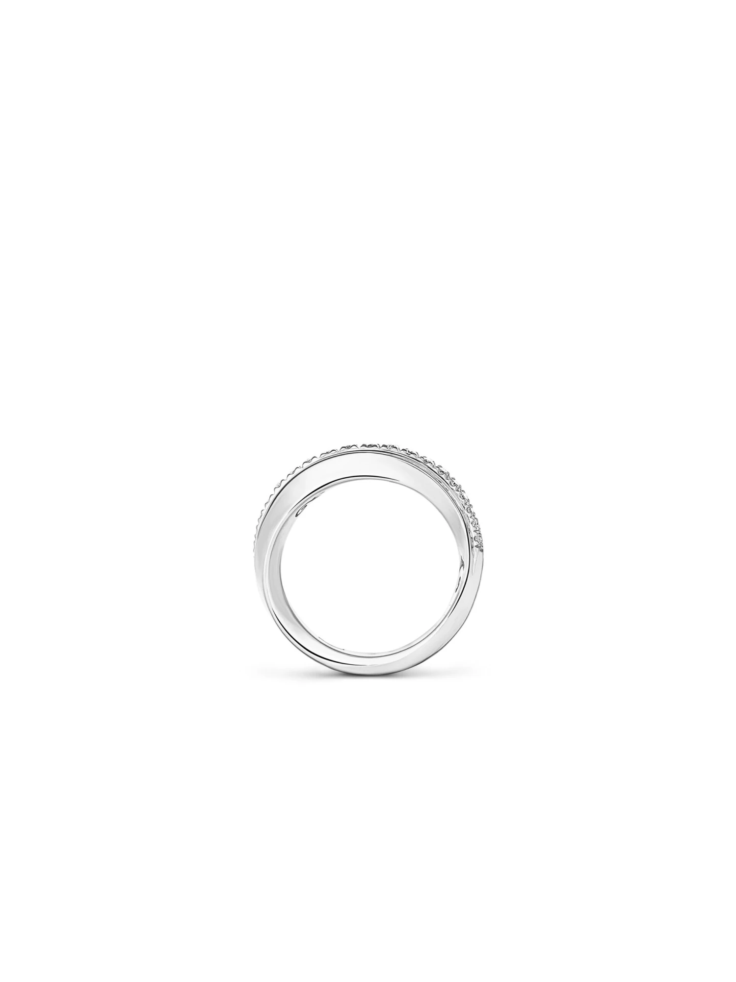A piece of jewelry with a twist—also literally spoken. The profile of the Basics by Wempe Classics ring is slightly twisted. A sparkling row of 21 brilliant-cut diamonds of 0.25 ct in total is set diagonally across the ring band made of 18k white gold and lets the ring sparkle and twinkle from all angles.
