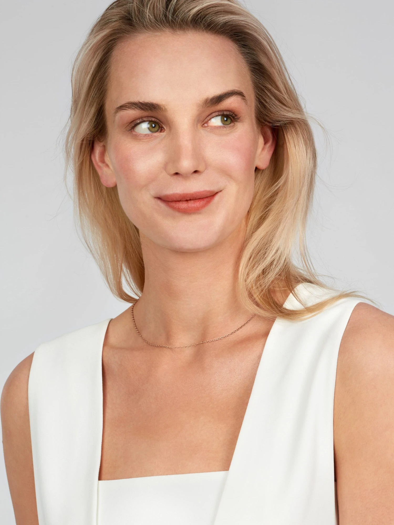 The necklace in 18k rose gold from the Basics by Wempe Classics line is a standard item in every jewelry box. The delicate trace chain has a diameter of 1.7 millimeters. The sleek necklace has a total length of 42 centimeters – at 40 centimeters there is a shortening eyelet to shorten the necklace even more. This means it is worn very close to your neck and is very well-suited for smaller pendants. A swivel-clasp lock ensures it is secure.