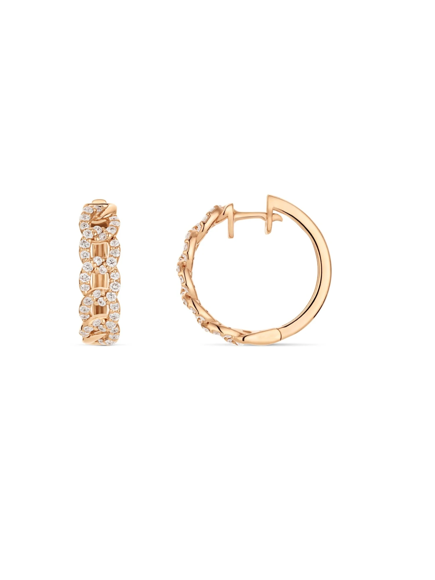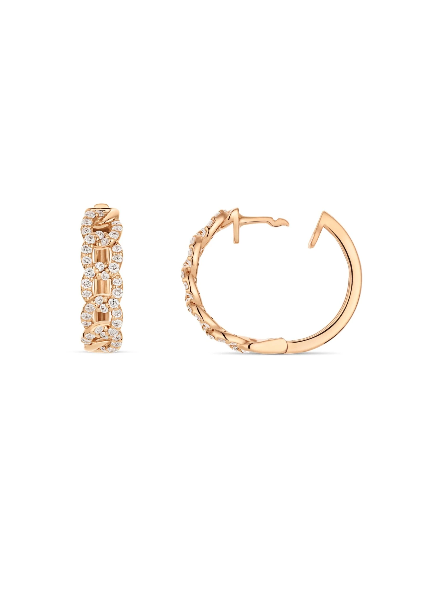 Two impressive trends are combined into one sparkling creation. By wearing the Electrify by Wempe Casuals hoop earrings in 18k rose gold you are demonstrating your talent as a fashionista. The earrings with their curb link chain look are set with 80 brilliant-cut diamonds totaling 0.80 ct. They add a touch of luxury to a business outfit and elegantly complement your evening wear. They are also very appropriate as an unforgettable gift because with these hoop earrings you will capture every woman’s heart.