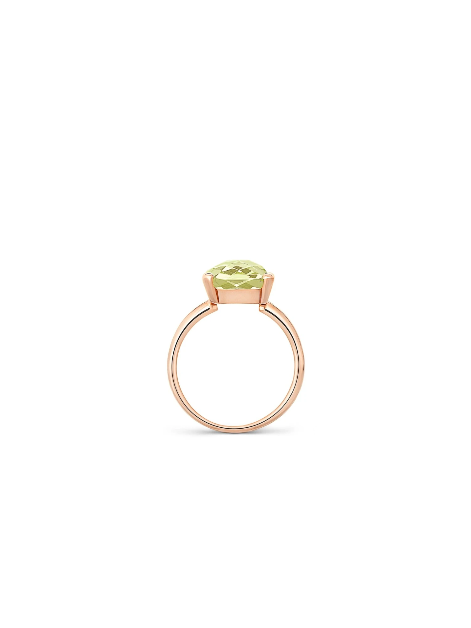 The center of the Electrify by Wempe Casuals ring is a faceted lemon citrine that is held by four delicate prongs and sits in the middle of the ring band made of 18k rose gold. It has been believed since ancient times that this gemstone gives energy due to its brilliant color. As a symbol for strength and power, the ring can thus be given as a gift on manifold occasion to serve as lucky charm or talisman.