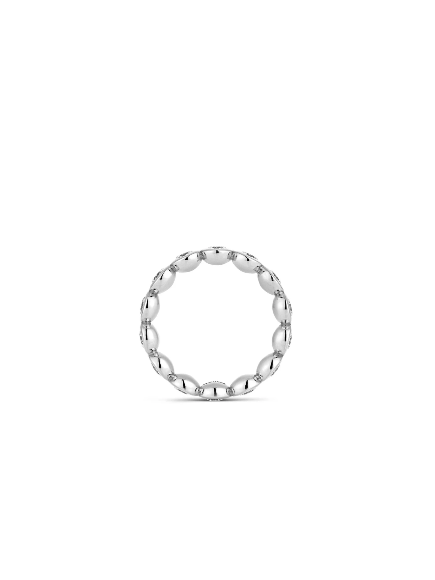A piece of jewelry like a wonderful promise that you want to hold on to forever: The Everloving Moonriver by Wempe Classics ring in 18k white gold and 13 brilliant-cut diamonds with a combined 1.69 ct stands out both through the classic design of an eternity ring and its unrivaled wearing comfort. Its curved settings on the inside and its consummate style ensure sporting chic and that you never want to remove the hand-flatterer again.