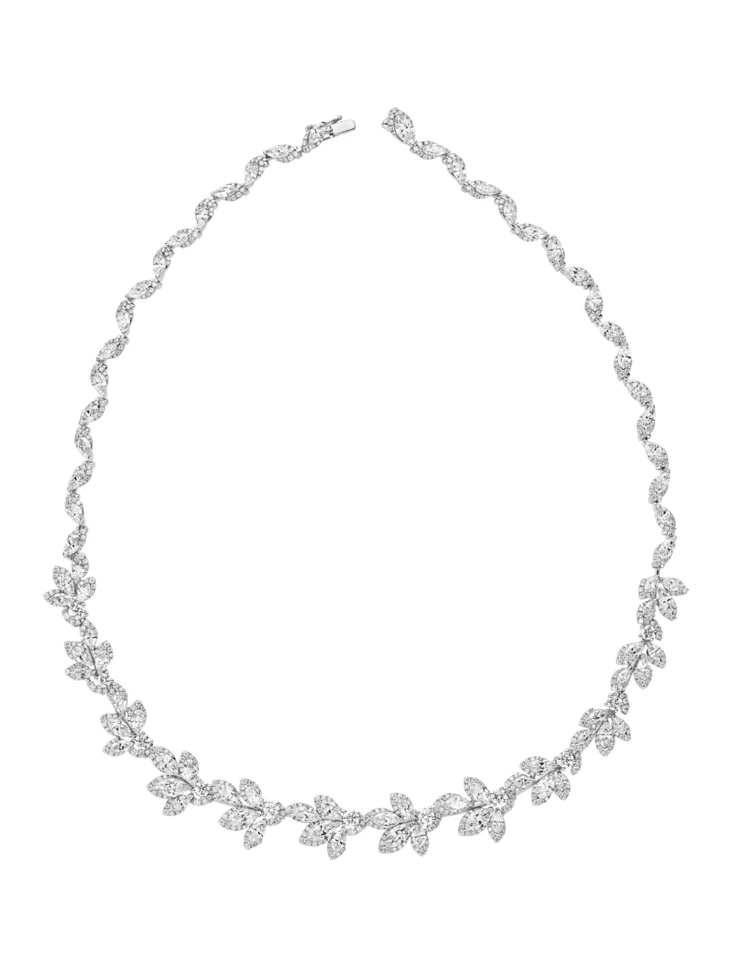 With the Flowery by Wempe Statements necklace made of 18k white gold, you bring a magical, floral motif to your significant otherโs daily life. The soft 42-centimeter floral vine of radiant, cascading diamonds wraps elegantly around the neck. The 816 diamonds, weighing 21.34 ct in total, are highlighted powerfully in almost invisible prong settings, letting their wearer shine. An opulent jewelry creation that declares love with a flourish.