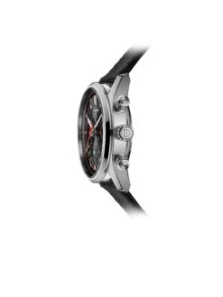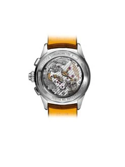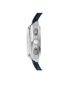 Inspired by the dauntless steel construction workers of the New York skyscrapers from the 1920s, the Wempe Glashütte I/SA Iron Walker collection distinguishes itself by the powerful combination of functionality and precision. The Iron Walker Automatic Chronograph with framed date display, tachymeter scale, and three totalizers is controlled by two pushpieces located directly next to the side protectors of the crown. The 42-millimeter stainless-steel case with a height of 7.90 millimeters is water-resistant to 10 bar and features a blue dial with blue totalizers. The raised steel hour markers and the Super-Luminova® coated hands ensure perfect readability also in the dark.