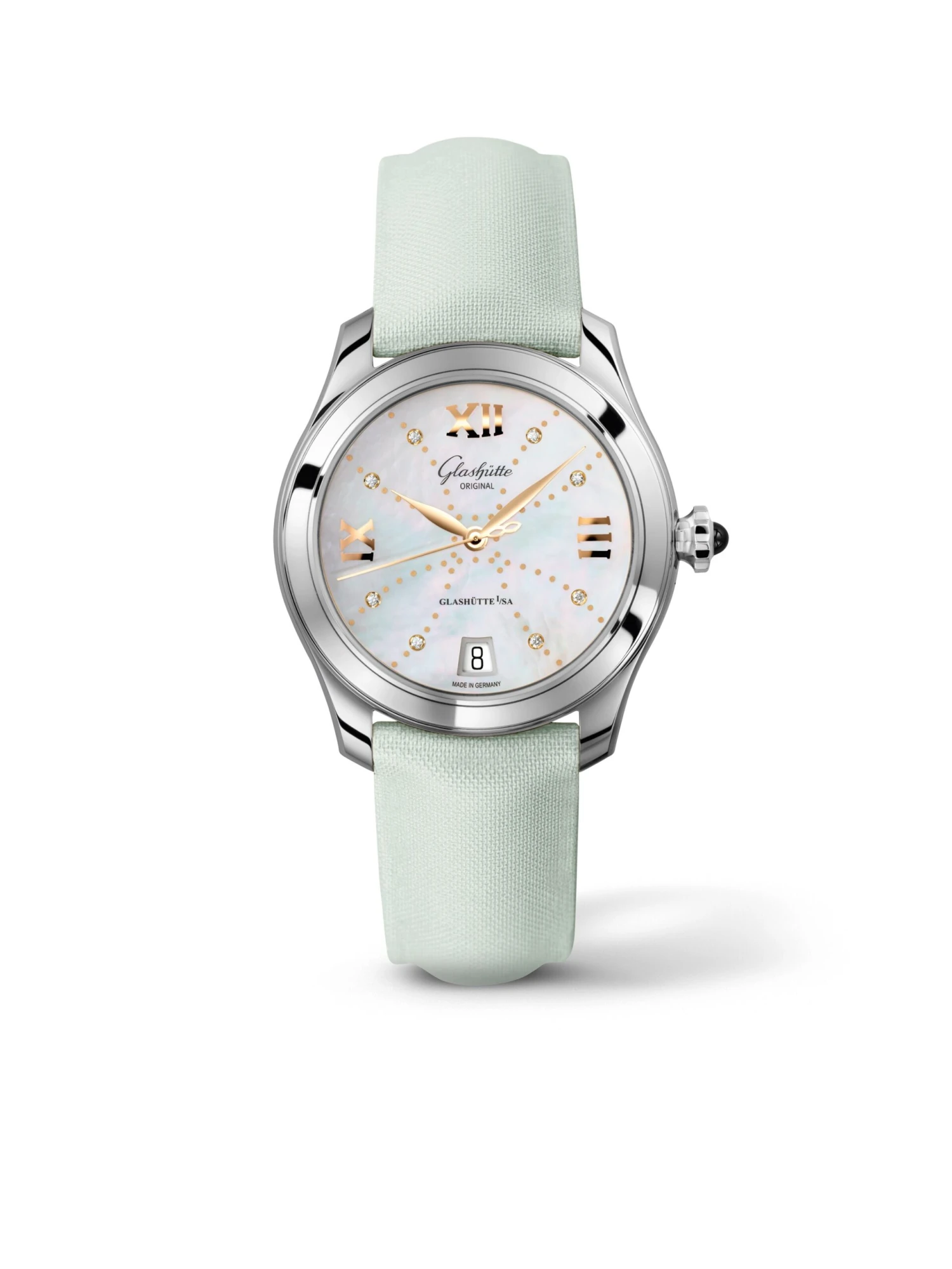The Lady Serenade is a faithful companion to its wearer for every occasion. Whether during the day in the office or in the evening in an elegant restaurant – you can rely truly on this feminine watch. Not least thanks to its robust and easy-care automatic movement that drives the three golden hands and the date indicator. The stainless steel bezel with the corresponding brilliant-cut diamond-studded crown and the applied Roman numerals and markers exude a subtle understatement.