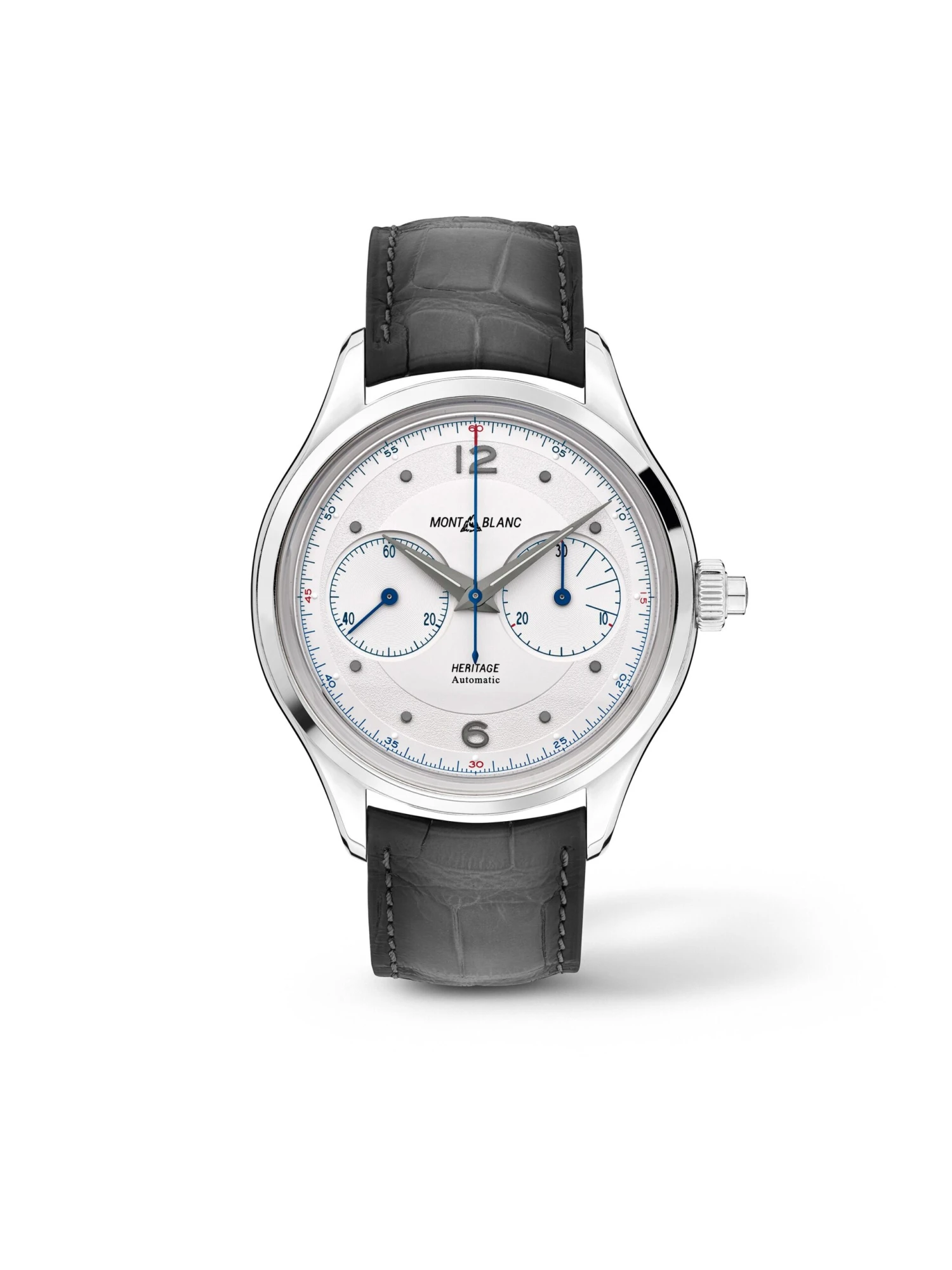 A three-hand watch par excellence: The Montblanc Star Legacy Automatic Date 42 mm Ref. 119951 brings expressive elegance to the wearer’s wrist Blued leaf hands circle over the dial with an elaborate guilloché pattern that traces the shape of the Montblanc Star and bears the characteristic Roman numerals and fine railroad minutes. Understatement is also evoked by the automatic caliber MB 24.01, which beats in the 42.0 mm stainless steel case, and the blue sfumato alligator-skin strap from the Florentine Richemont Pelletteria.