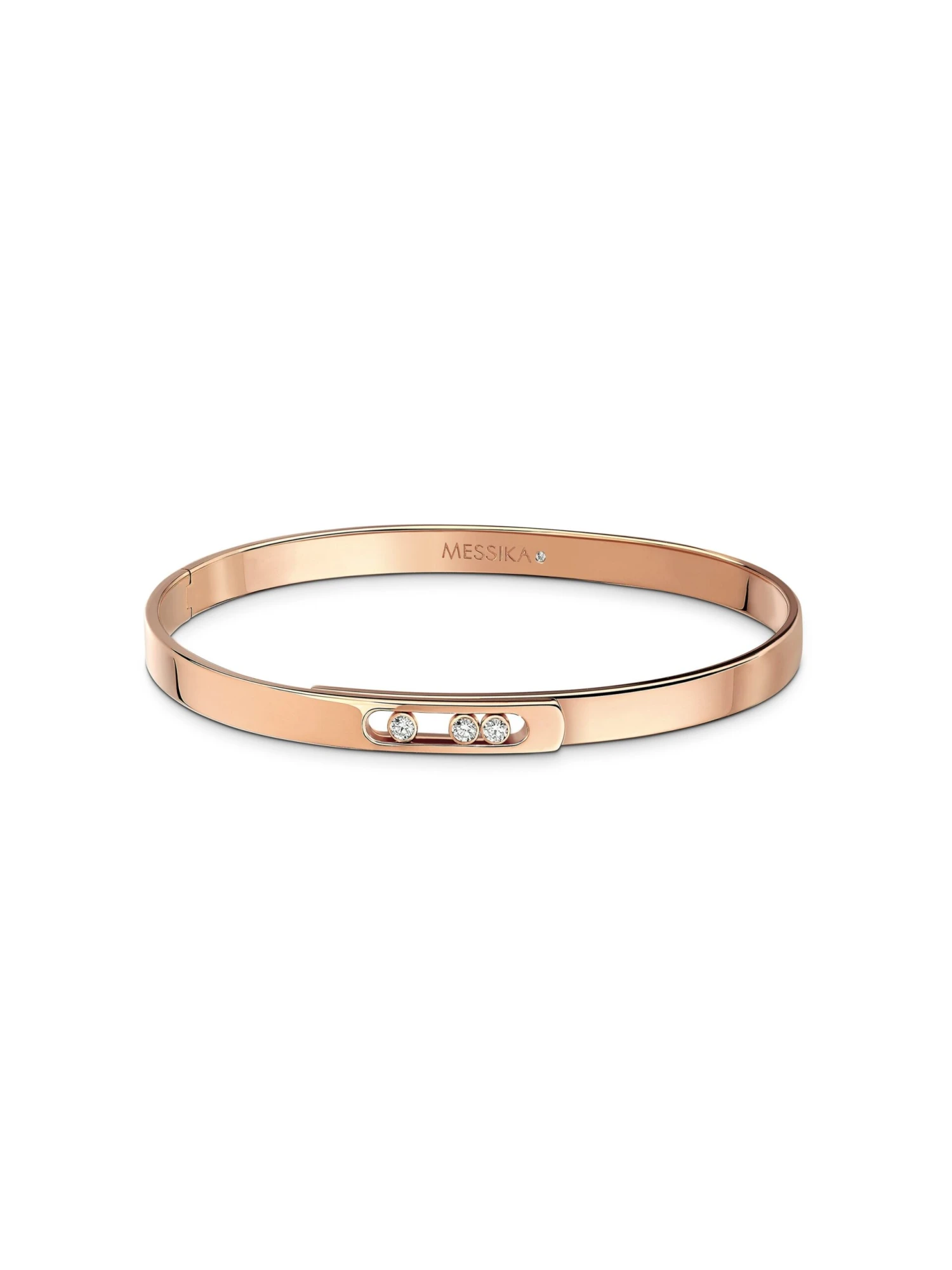 A must-have for fashionistas who love minimalistic jewelry with clear lines, but are nevertheless looking for something special. The slim Move Nova bangle in 18k rose gold is complemented by the three iconic diamonds of the Move collection. They stand for the timeless love of yesterday, today, and tomorrow. This makes the bangle a jewelry item for every day, which loses nothing of its striking impact when worn together with other bangles and bracelets.