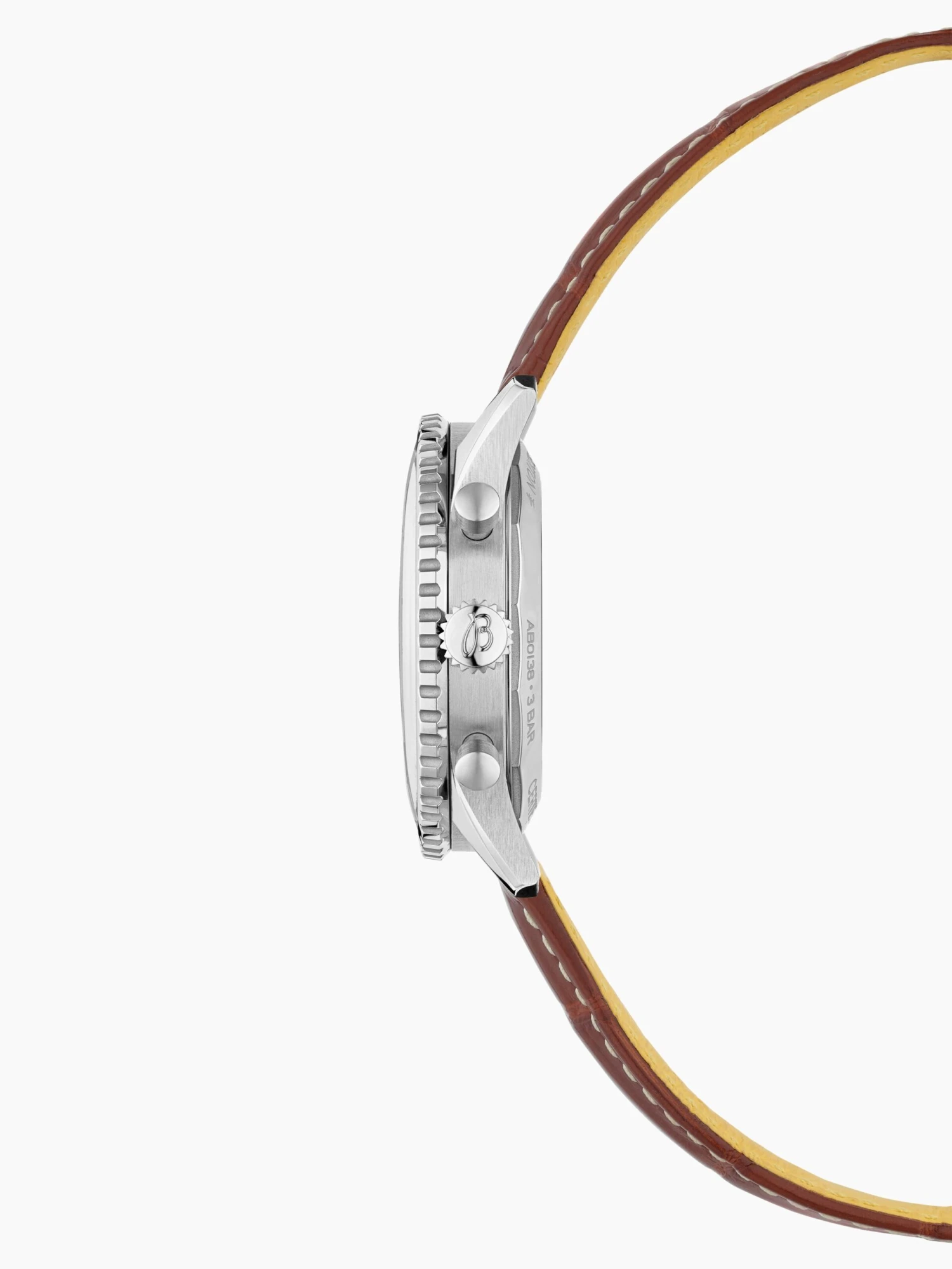 A symbiosis of the best of the watch world. For its Signature Collection, Wempe meets renowned manufacturers and combines their iconic models with its own long-standing knowledge of customers’ expectations and wishes. In this way, the Navitimer B01 Chronograph 43 Signature Collection (Ref. AB01387A1C1P1) is an exclusive model, limited to 100 watches, that delights with its midsize format of 43 millimeters and meets the needs of those customers who find 46 millimeters too bulky and 41 millimeters too complex. Technically, the self-confident pilot’s chronograph features Breitling’s popular self-winding manufacture caliber B01, which is considered a high-performance engine and impresses with a power reserve of up to 70 hours and COSC chronometer certification. Visually, the dial in particular catches the eye: While it has usually been multicolored in Breiting’s Navitimer models up to now, it surprises in this version with a uniform appearance in indigo blue and, upon closer inspection, reveals the attention to detail that Wempe and Breitling share. The use of 18k rose gold for the luminous hour markers ensures optimal readability. For a harmonious as well as noble overall appearance, the hands are also made of 18k rose gold. A cognac alligator-skin strap, color-coordinated with the rose gold tone, holds the stainless-steel watch, which is water-resistant up to 30 meters, securely on the wrist and completes the overall picture of this one-off edition of the Navitimer pilot’s watch model.