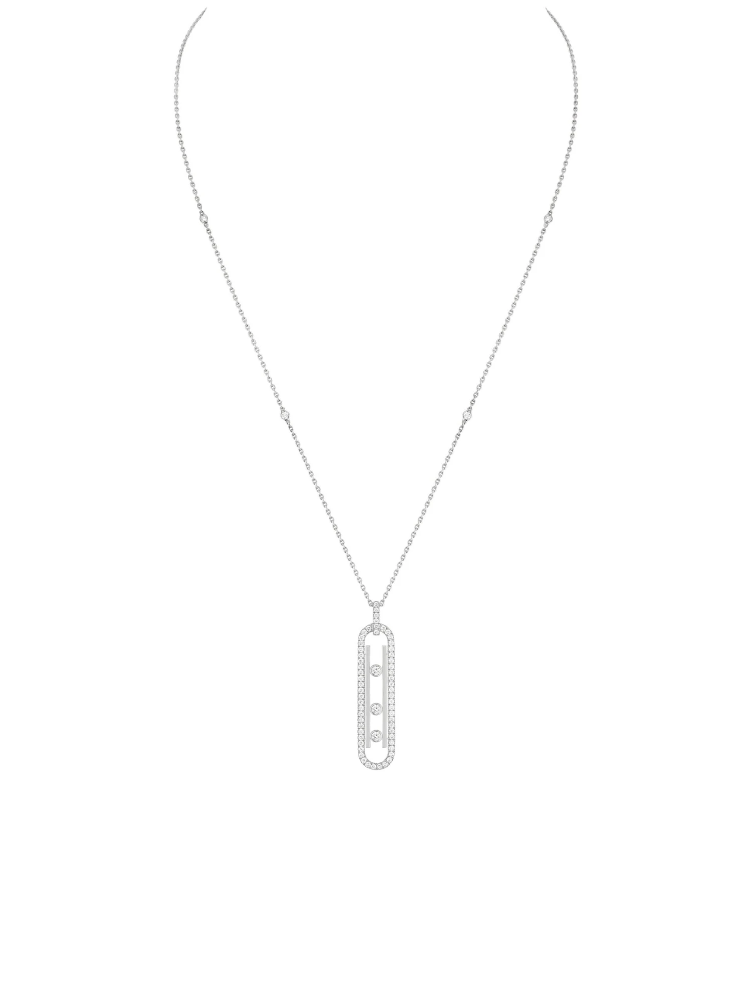 On the occasion of the 10th anniversary of the Move collection, Maison Messika has designed the Move diamond necklace. Paying tribute to the collection’s iconic design, the style-defining Move cage and the three moving diamonds present themselves in a new, casual shape. Thanks to a sophisticated slide mechanism, the length of the 18k white gold necklace can be adjusted to match every look. A modern piece of jewelry that can be perfectly combined with other necklaces.