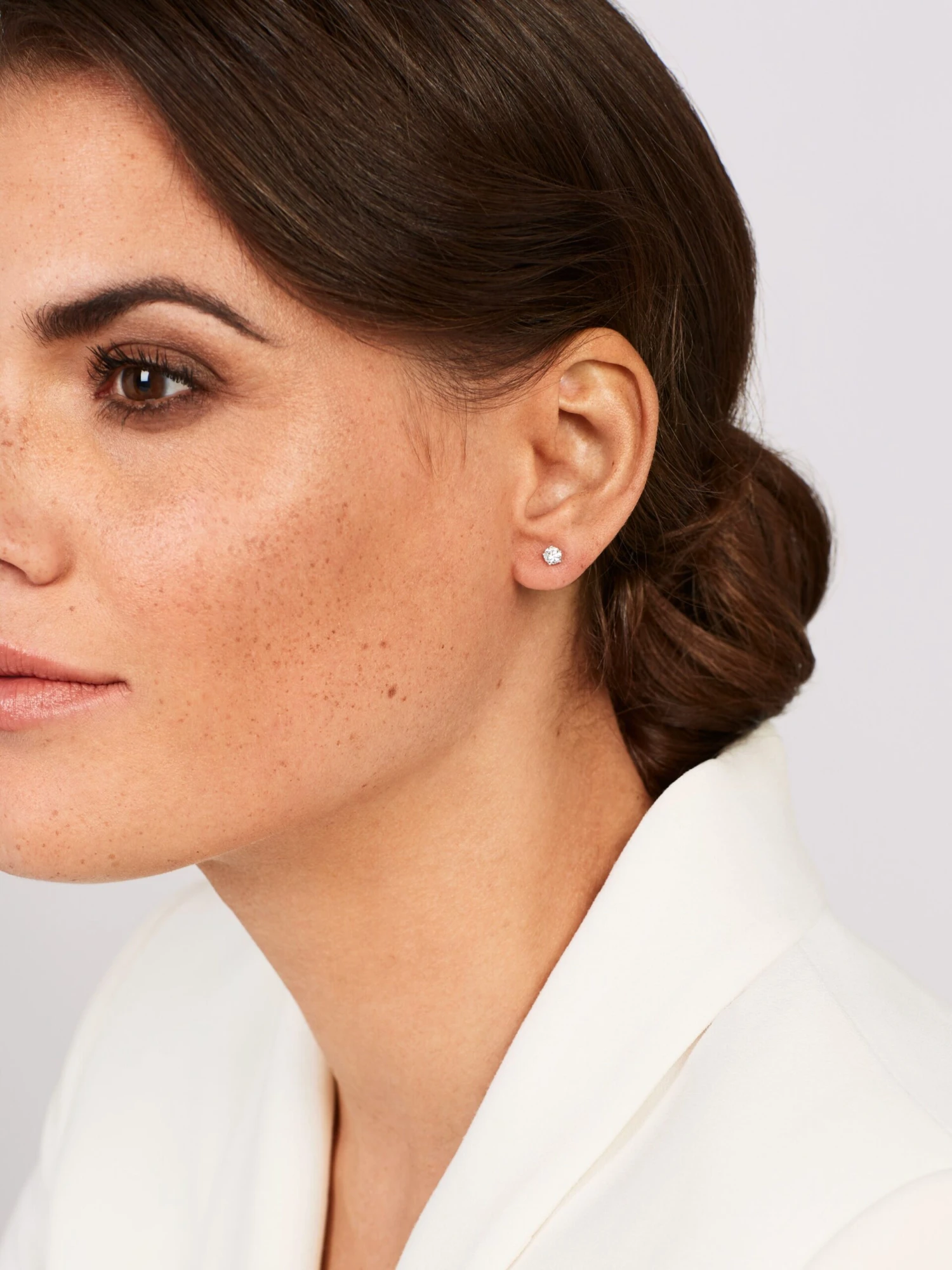 Brilliant-cut diamond ear studs are timelessly beautiful favorites whose feminine charm fascinates time and again. To bring out its radiant shine, the 0.25 ct solitaire is held almost invisibly by five prongs. The unique effect of these brilliant-cut diamond ear studs is brought splendidly to the fore with 18k white gold. A duo for everyone who wants to spoil themselves or gift others with something precious.