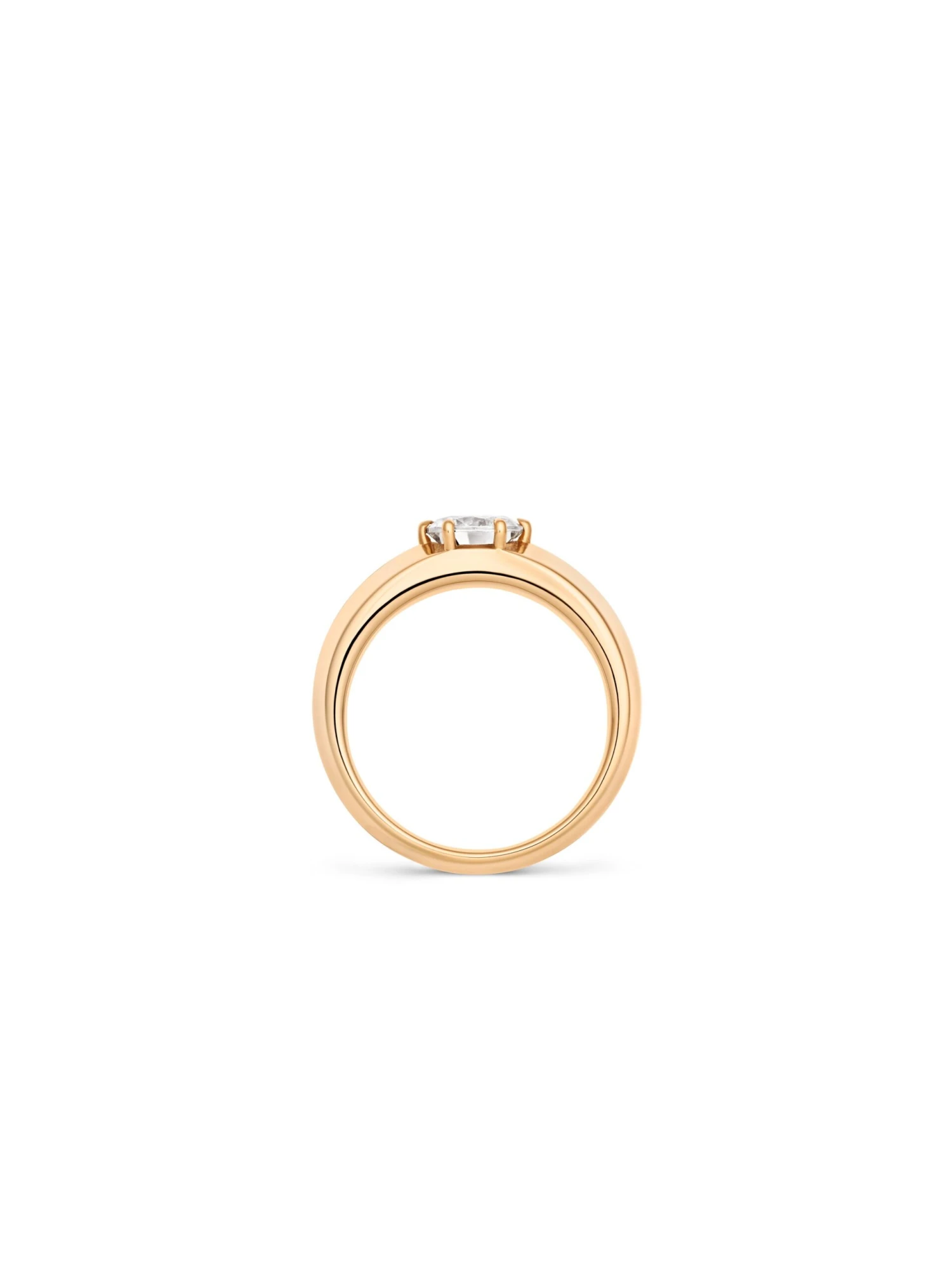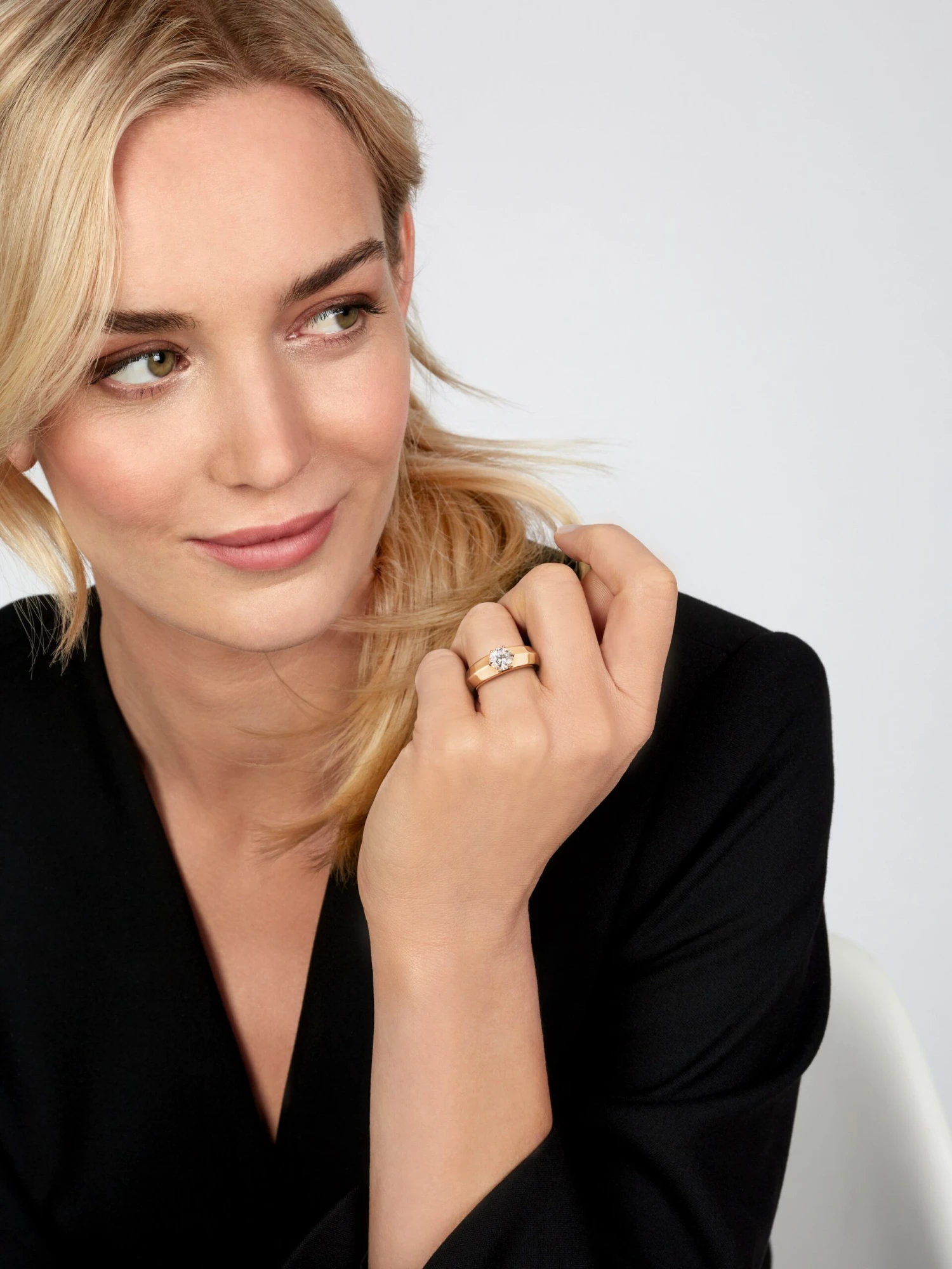 With the expressive One Viva by Wempe Classics ring, you show your joie de vivre with a wonderful sparkle. The combination of warm shimmering 18k rose gold and a 1.00 ct solitaire in a delicate prong setting turns the ring into an absolute highlight. The shiny edge of the voluminous ring band gives the design a special dynamic. Celebrate life with this extraordinary jewelry creation!