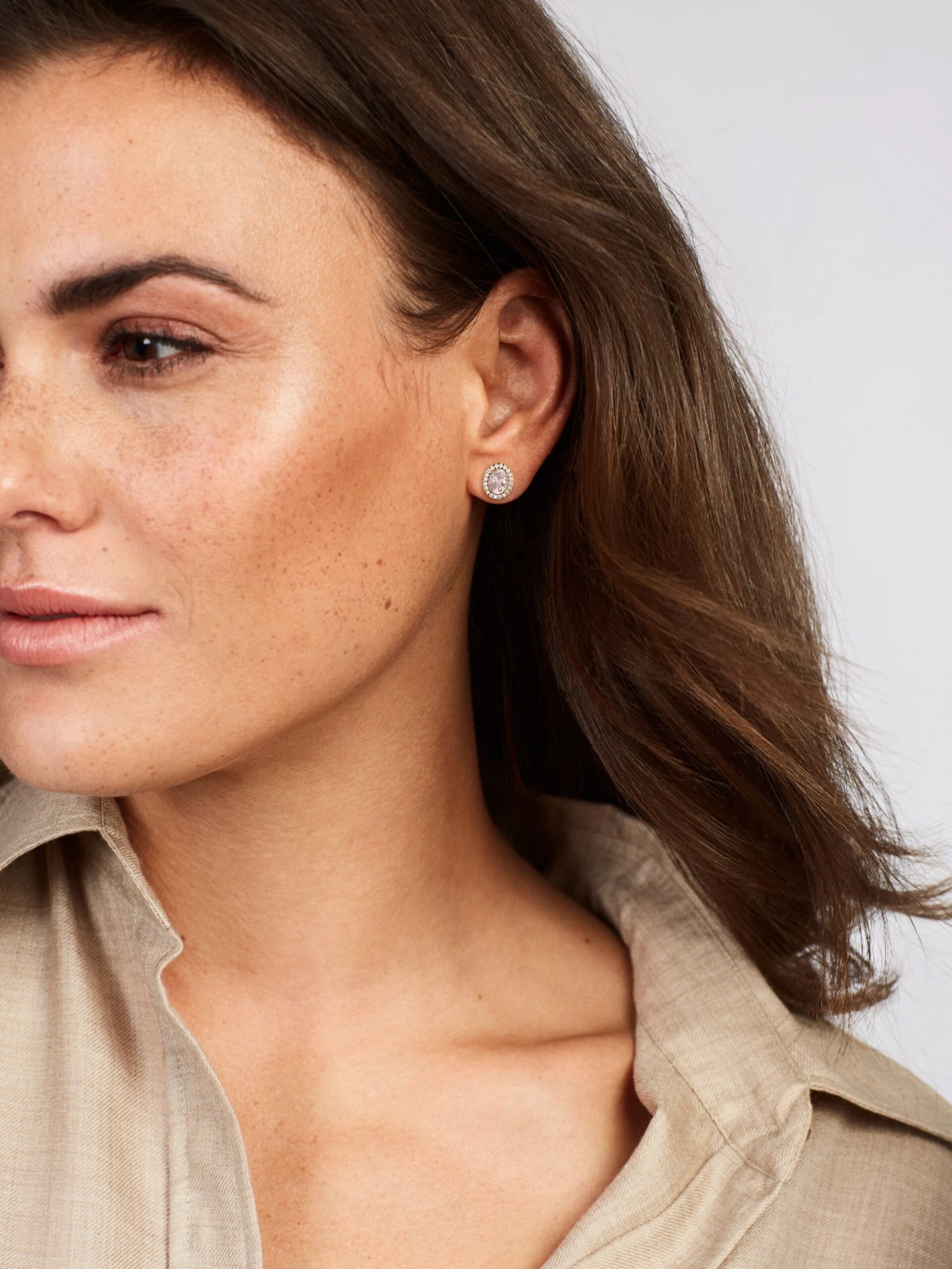 These ear studs are a sparkling eye-catcher—whether they are worn on festive occasions or as highlight with a plain cashmere sweater. Two oval-cut morganites of 2.05 ct in total are set in the center of the Opulence by Wempe Statements ear studs and are surrounded each by a halo of 20 dazzling brilliant-cut diamonds with a total carat weight of 0.40 ct. Made of 18k rose gold, the warm hue of these ear studs flatters every complexion and their classic design gives them a noble and radiant appearance.