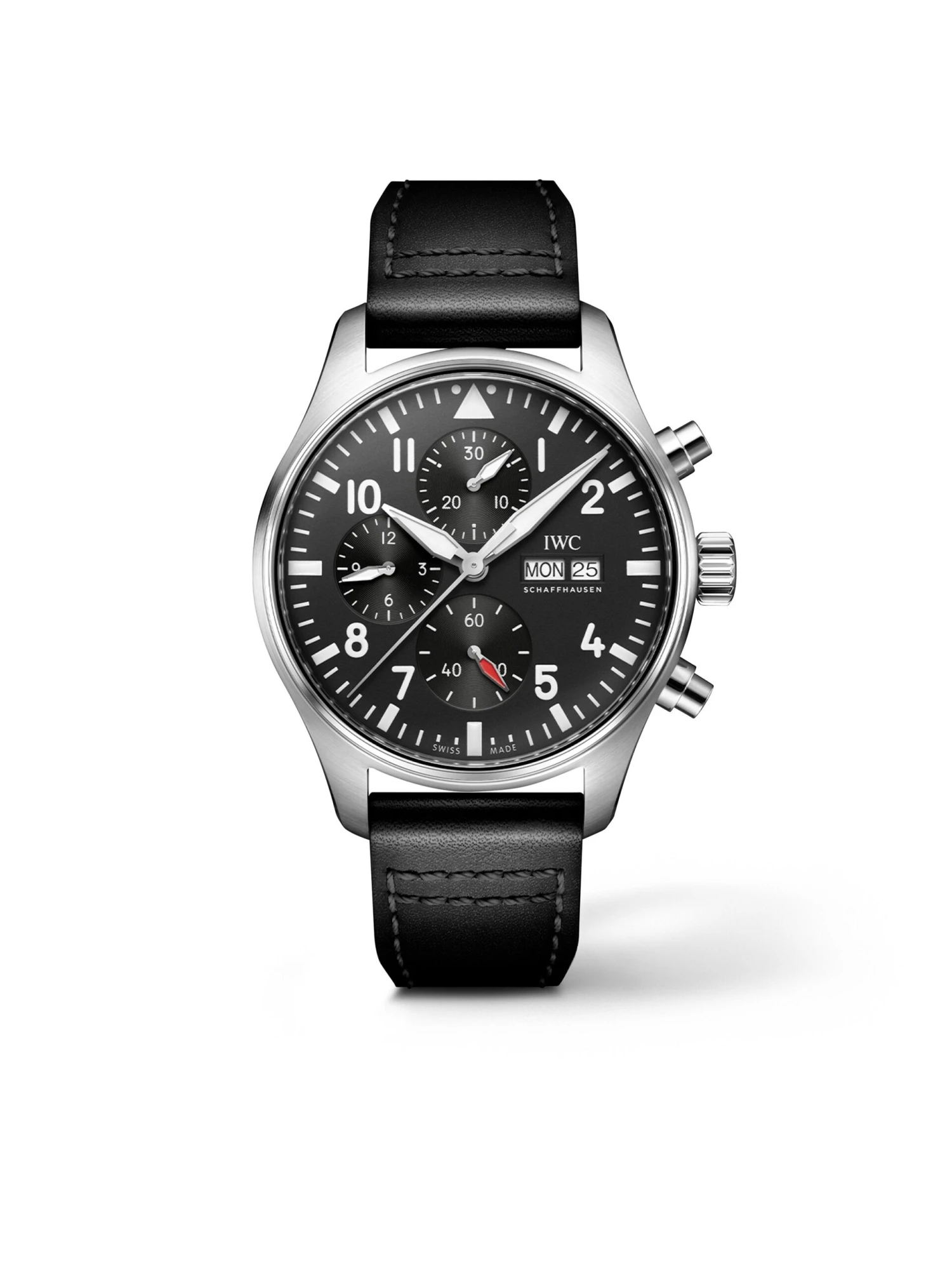 A new ultimate sports watch: Following the Spitfire, the Pilot’s Watch Chronograph (Ref. IW378001) completes the collection of IWC Schaffhausen. In the design inspired by cockpit instruments, the chronograph in the 43-millimeter stainless-steel case presents the functions of self-winding manufacture caliber 69385 precisely and clearly on the black dial with rhodium-plated hands: stopwatch, date and day display, as well as a small seconds subdial with stop mechanism. Thanks to the brand’s bracelet quick-change system, the black calfskin strap can be easily changed.