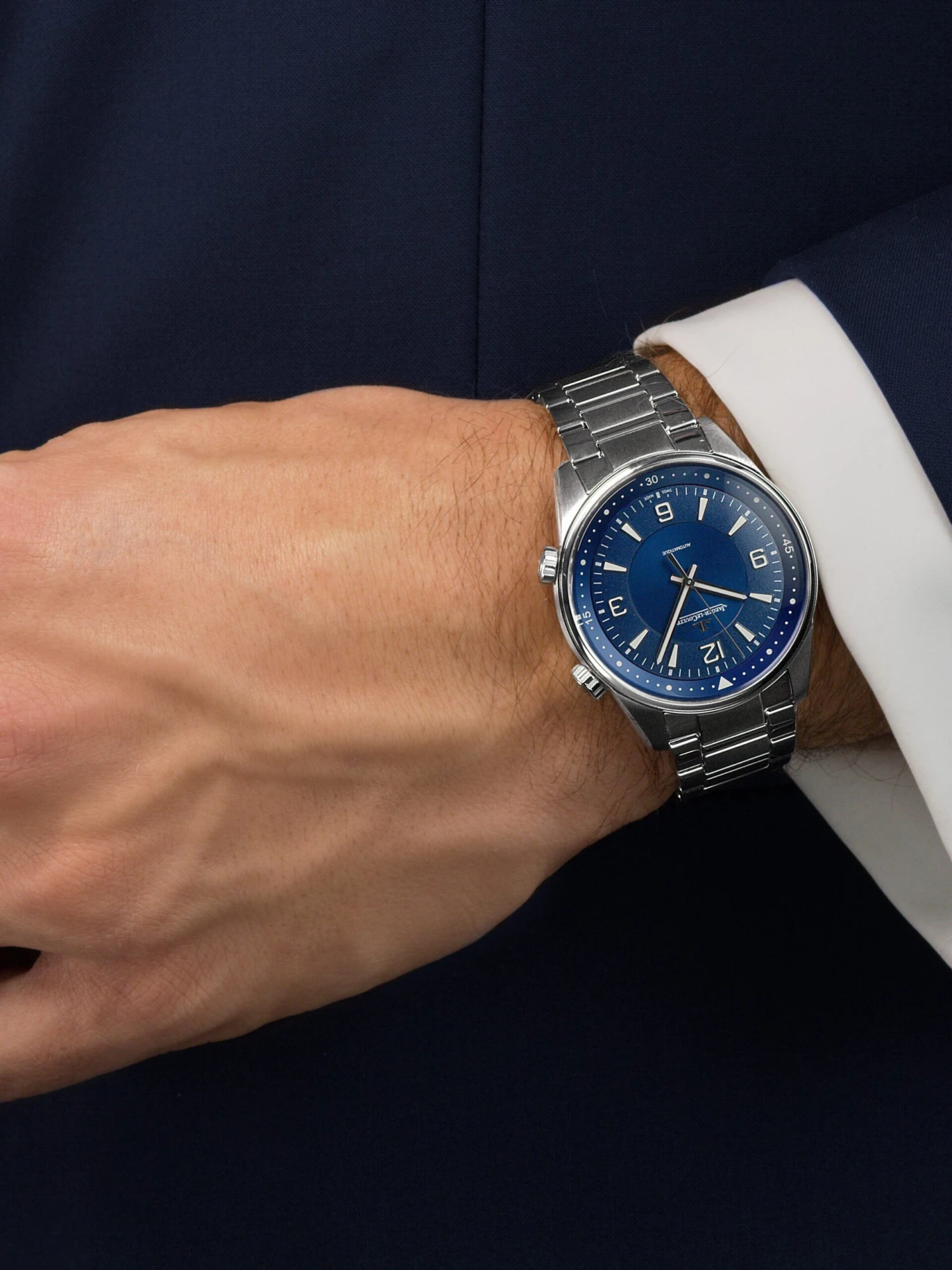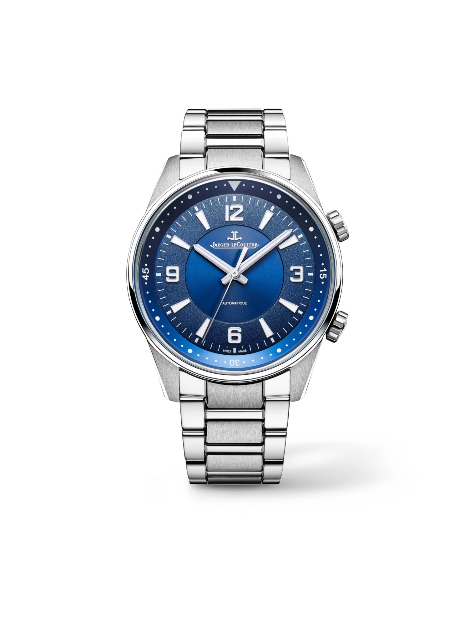 The Polaris Automatic with two crowns is a sporty watch for everyday use. The crown at two o’clock adjusts the inner rotating ring. The second crown at four o’clock is used to set the time. The blue dial with its three levels has a very sculpted effect. The partly brushed, partly polished stainless steel case with a diameter of 41 millimeters and a height of 11.2 millimeters houses an automatic manufacture movement.