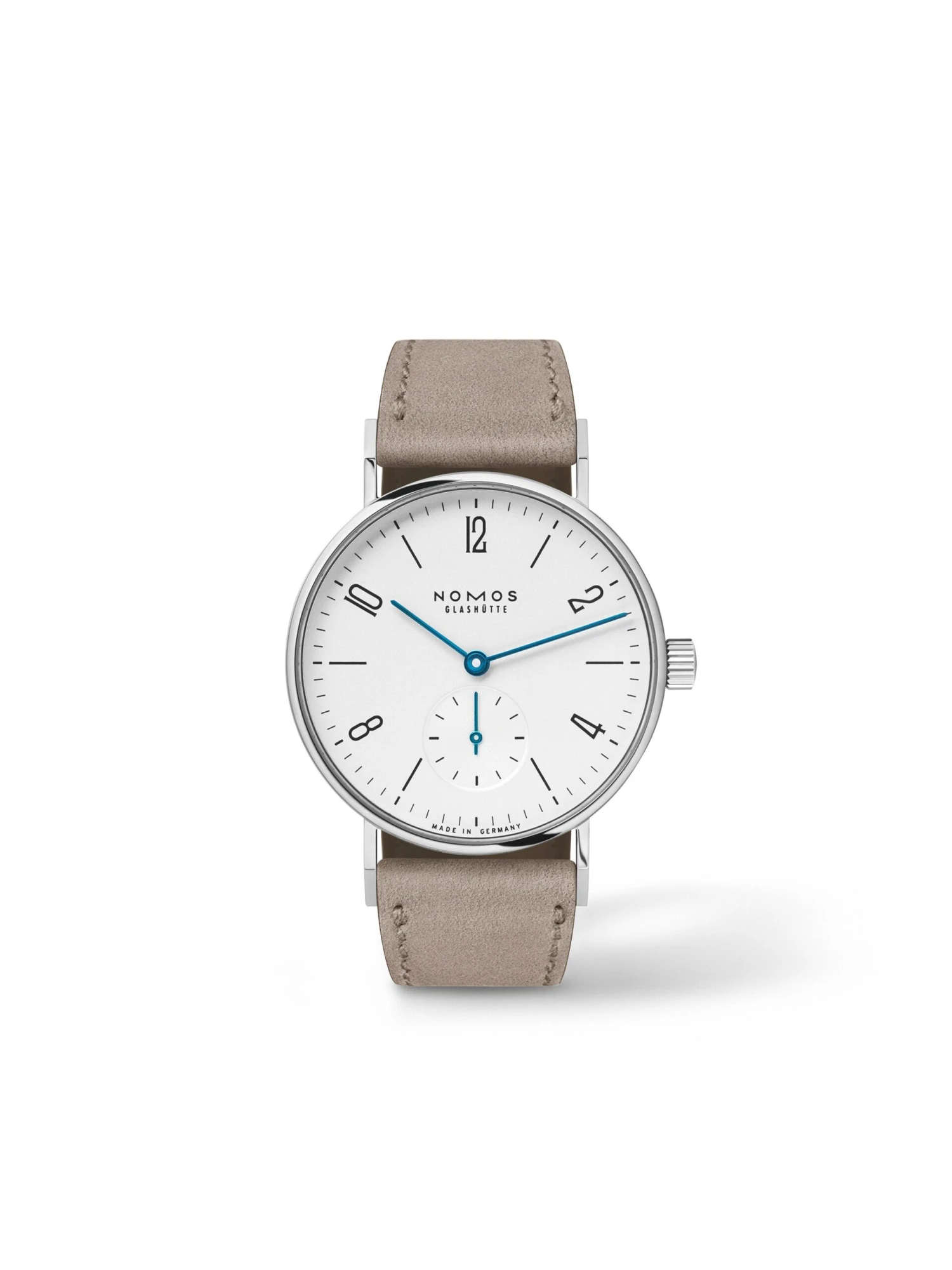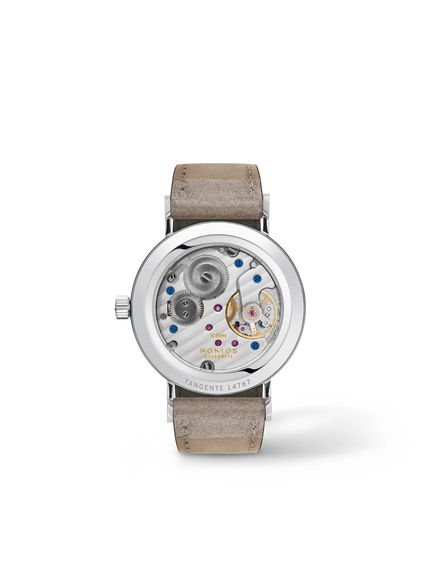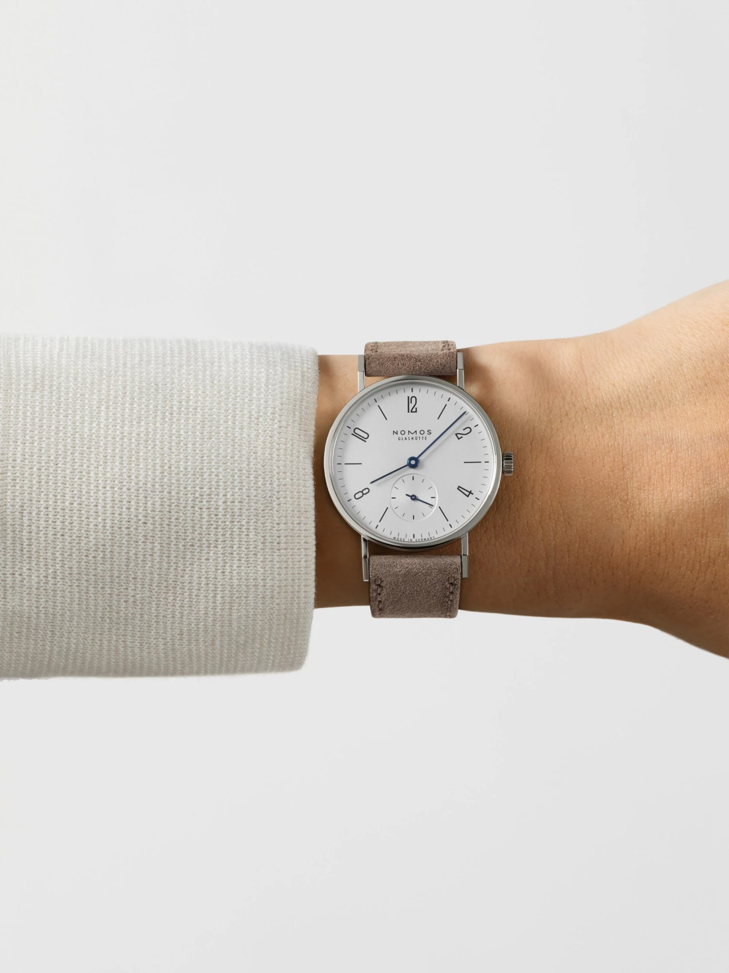 The Tangente, reference 123, is the classic from this Glashütte watchmaker. As a NOMOS watch from the very first hour, it stands for the quintessential features that watch aficionados adore: classic simplicity, clean lines, and first-rate watchmaking mechanics. Five digits with typography reminiscent of the Bauhaus era, small seconds at six o’clock, and cornflower-blue hands characterize its appearance. With a diameter of 33.0 millimeters and thickness of just 6.0 millimeters, it cuts an exceptional figure on the wrists of both men and women. The Alpha manufacture caliber also enjoys classic status. The hand-wound movement, meanwhile, runs for up to 43 hours when fully wound.