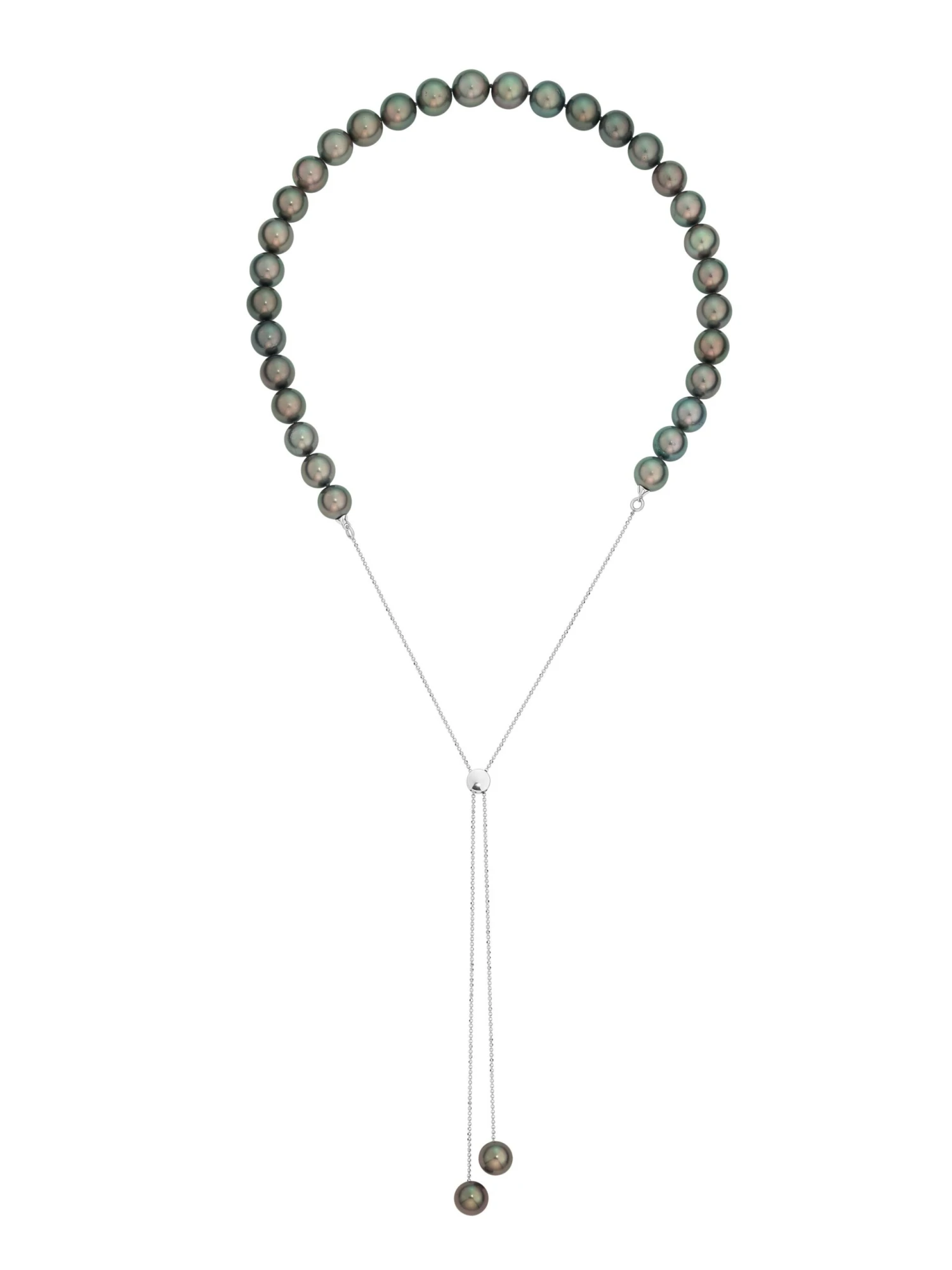 Iridescent Tahitian pearls smoothly embrace the neck and impress with their soft wearing comfort. The Tidedrops by Wempe Casuals necklace is a sophisticated alternative to the classic pearl necklace. Thanks to a beaded chain that is adjustable in length and adorned on both ends with a shimmering Tahitian pearl, the necklace can be worn in two ways: close to the neck as a tight choker or as a modern Y-necklace. Whatever way you choose, you can be sure that that the dark pearls make this item a true eye-catcher.
