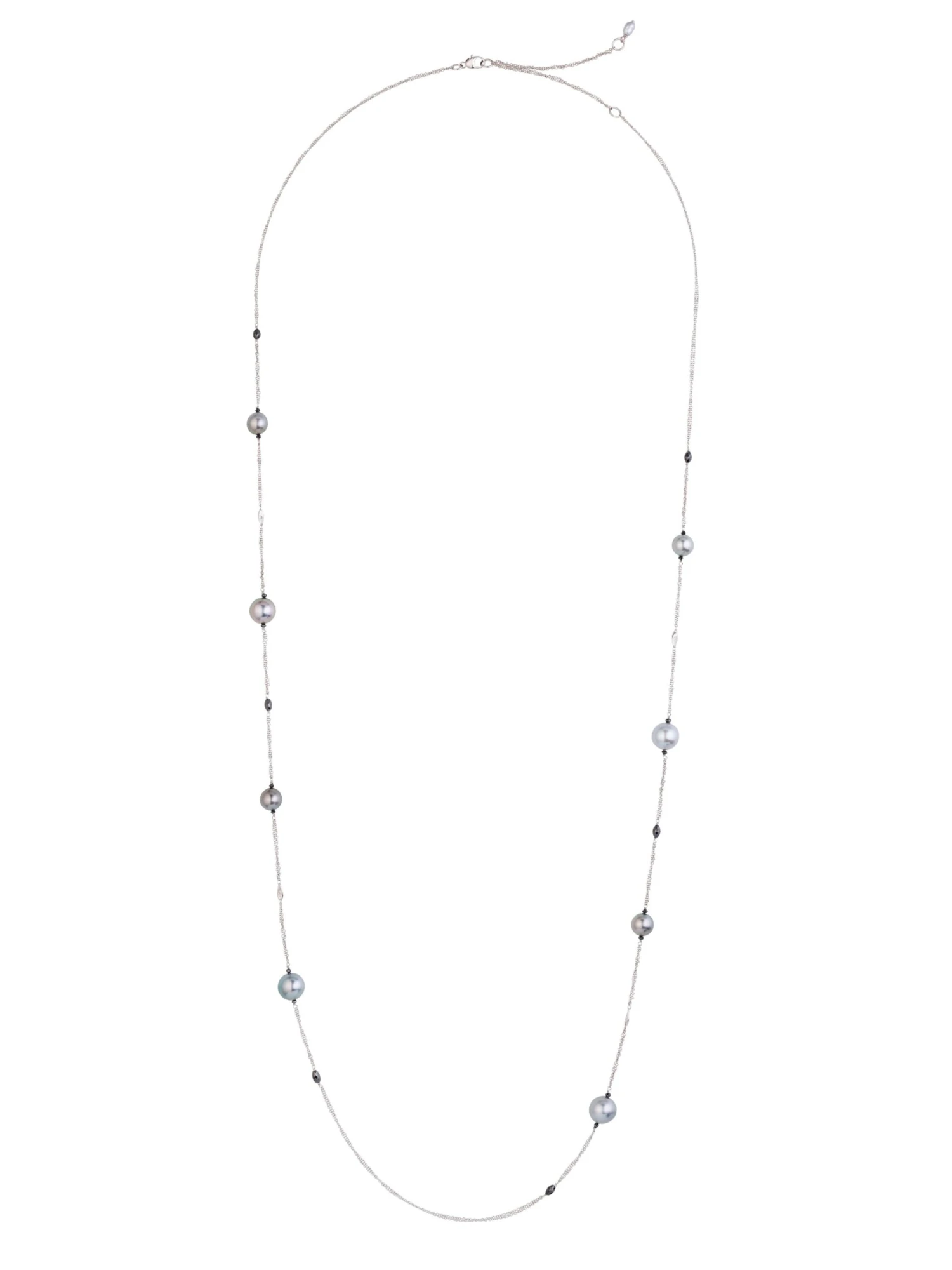 Delicate, feminine, and at the same time mystical and powerful. 22 black diamonds and 8 Tahitian pearls in hues of gray adorn the 100 cm Tidedrops necklace. The interplay of sparkling precious metal and shimmering pearls creates an exciting contrast and makes this piece of jewelry an absolute eye-catcher.