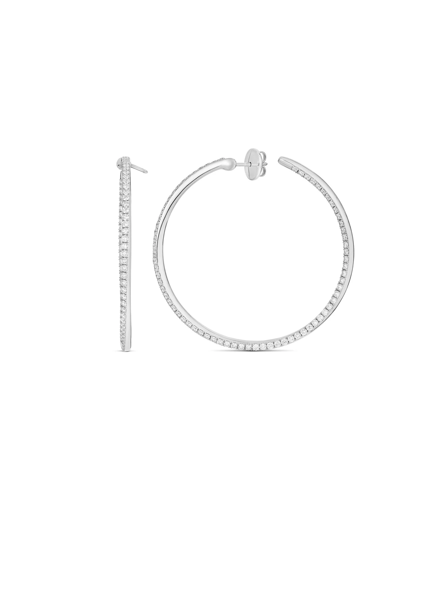 The Uptown by Wempe Statements hoop earrings in 18k white gold fascinate both on first and second glance. Their imposing size alone of 4.4 cm in diameter makes them a true statement piece. However, the real highlight is their curved diamond stripes. 146 brilliant-cut diamonds and a total carat of 2.92 twist ingeniously around the glittering hoop earrings, accentuating their sparkle from every angle. Literally all-rounders which cast their spell over and over again on the beholder.