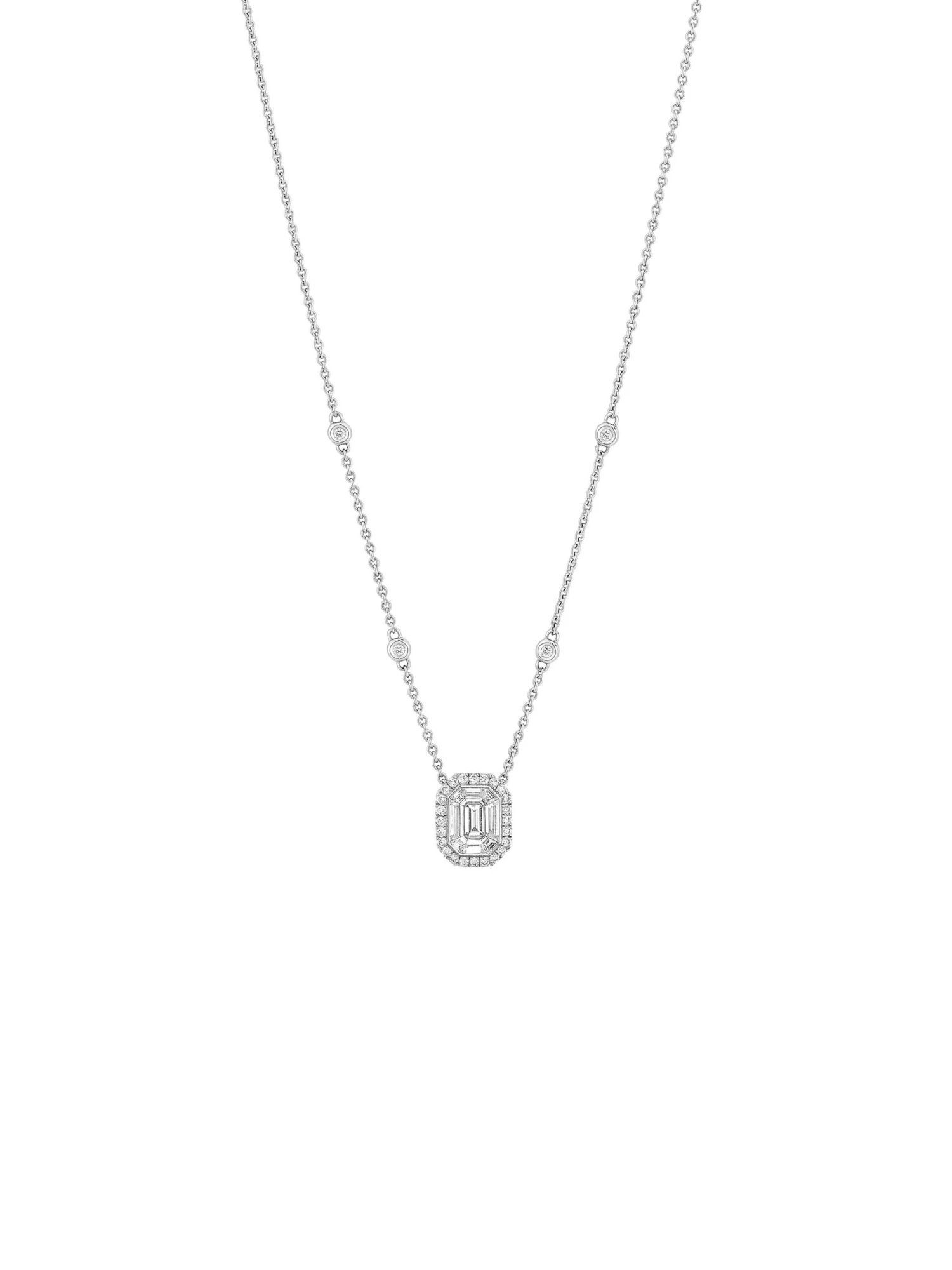 A sophisticated masterpiece: Nine fancy-cut diamonds of 0.75 ct in total combine without any visible joints to form a seemingly octagonal-cut diamond. This special setting technique has a great effect, which is reinforced by a fine wreath of brilliant-cut diamonds. Fabulously beautiful and exactly the right jewelry item for special occasions.